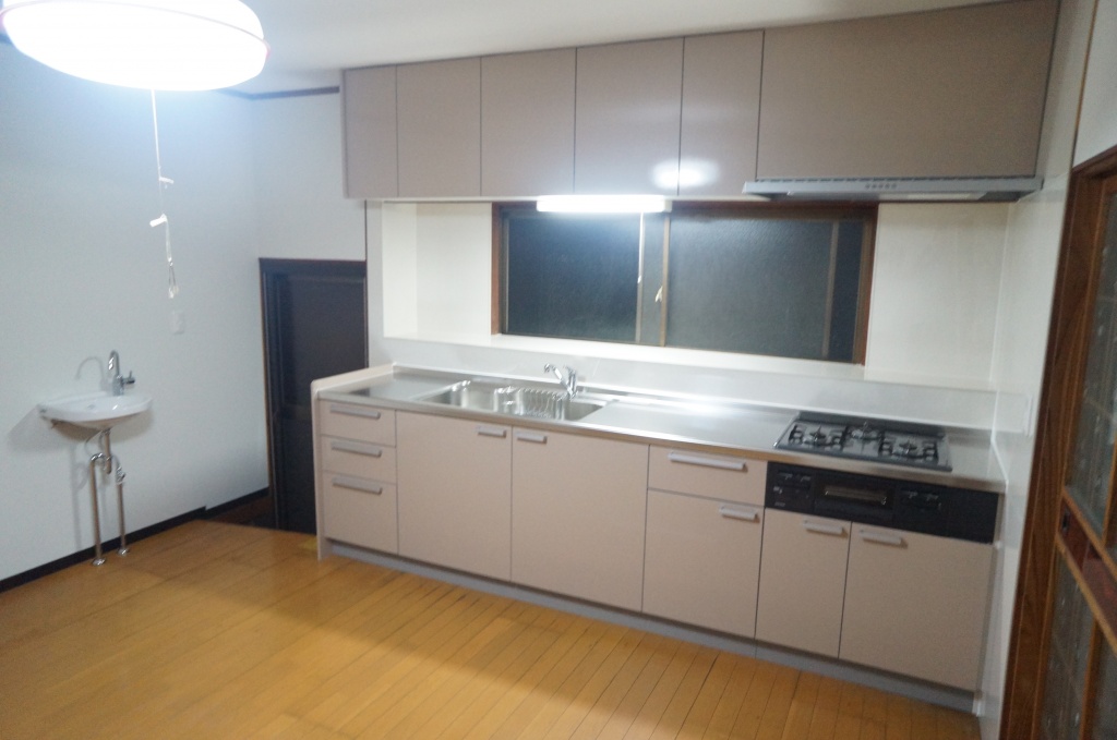 クリナップ ラクエラ I型2850 H=85cm D=60cm 開き扉 を施工、手洗いも設置しました。