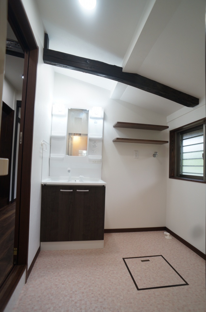 旧土間のブロック基礎も使える状態で無かったため、基礎から作り替え、雨漏りも発生しましたが、予算の都合上 ルーフィング補修で対応でしたが、柱、梁などの構造体と屋根は再利用して、それ以外は、殆ど土台や窓の外壁から作り替えたため、ほぼ新築のような仕上がりに作りあがりました。古民家のテイストを残して欲しいご要望がありましたので、なるべく梁、柱を見せる真壁作りを心掛け致しました。