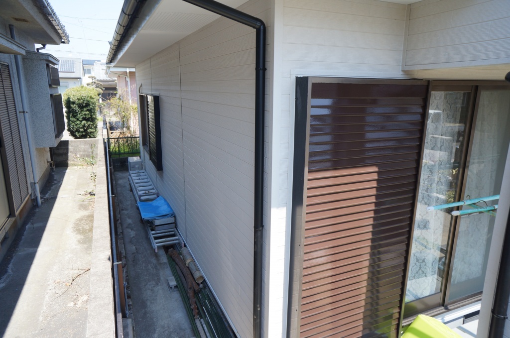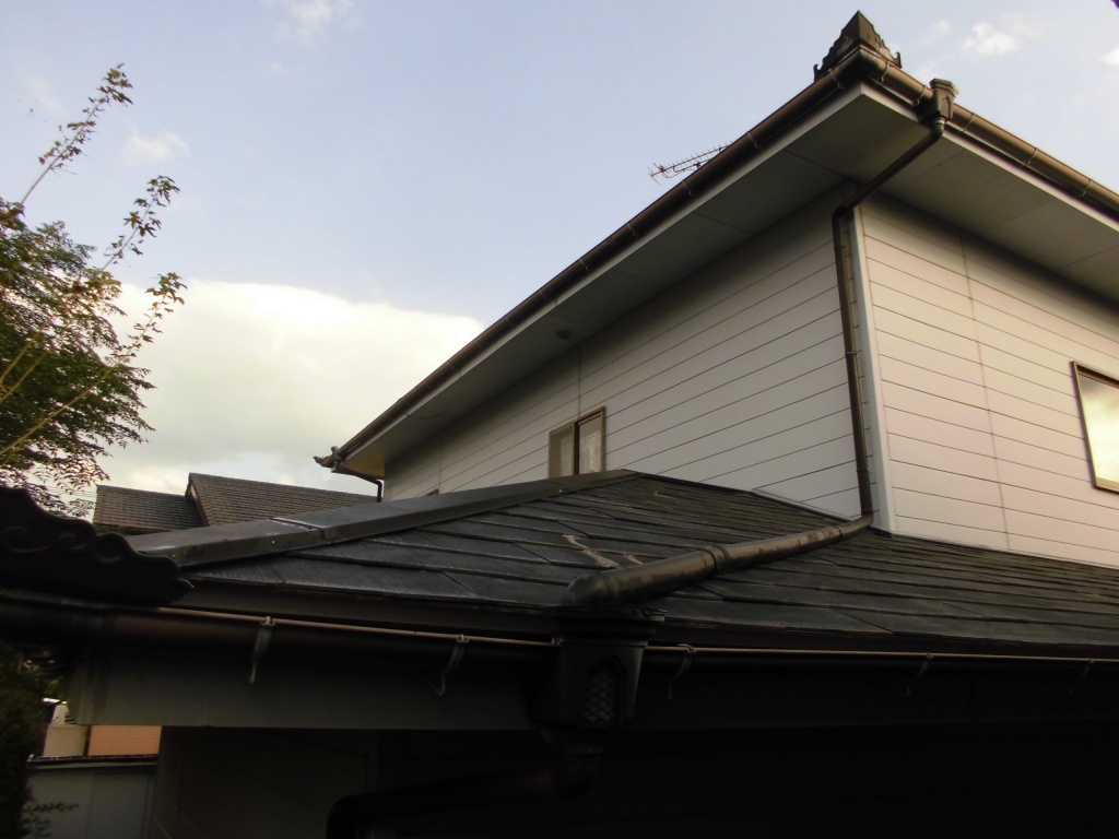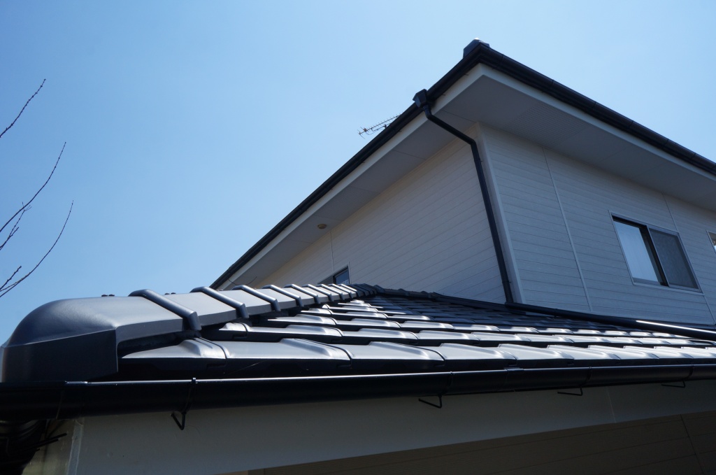 以前にお客様ご自身で屋根・外壁の塗装をされたということで、今回は屋根を陶器瓦へ葺き替え、外壁には金属サイディングという壁材を上貼りする見積もりを作成し、実際に施工させていただくこととなりました。最初は屋根工事からとりかかり、既存のコロニアルを剥いで傷んでいた屋根下地を部分補修しルーフィングという防水シートを敷き込んで、陶器瓦をかぶせました。外壁には注入材という防腐剤にひたした木材で胴縁という、金属サイディングをとめるための下地を取り付け、金属サイディングを貼りました。塗装工事に比べると倍以上のコストがかかりましたが、新築のように仕上がりお客様にも大変喜んでいただけました。