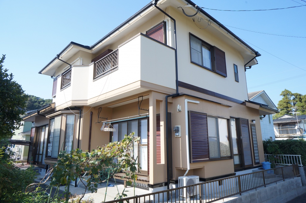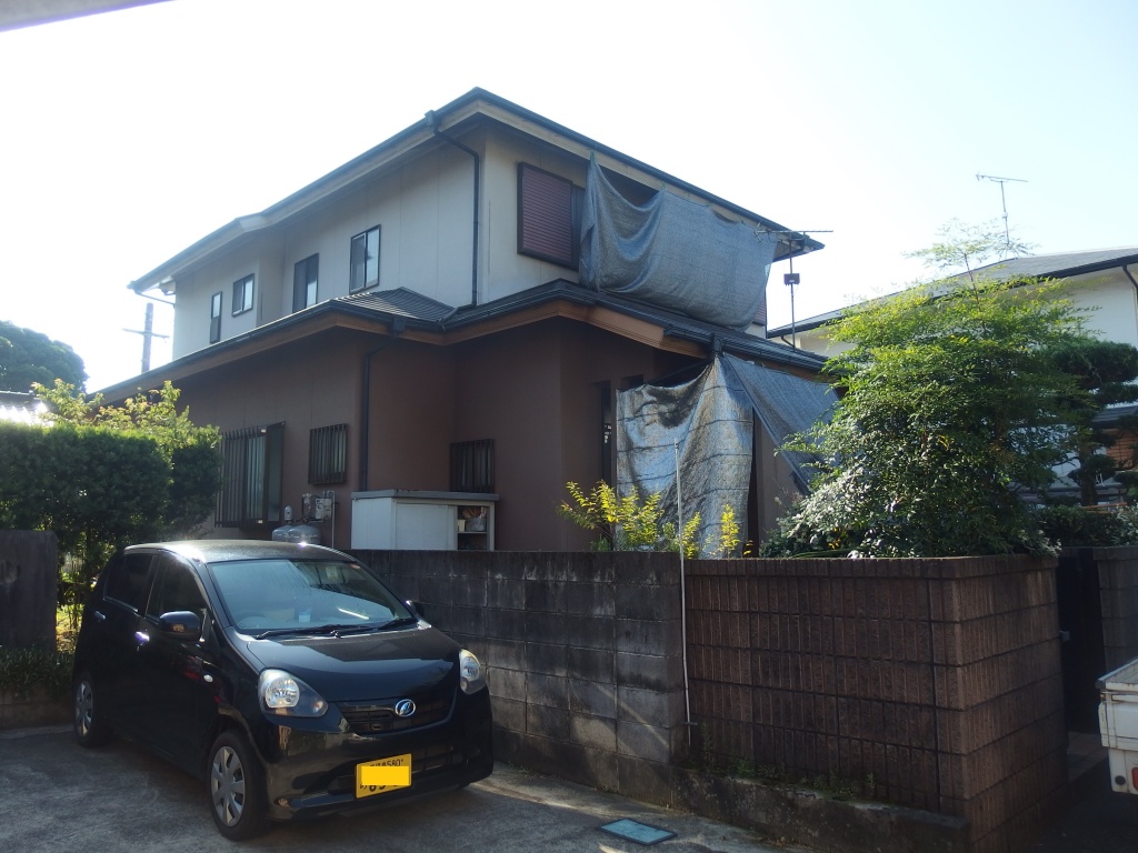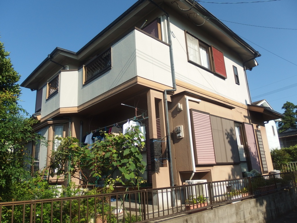 屋根も外壁もフッ素塗料を使用、シーリングはオート科学のオートンイクシードを使用しました。せっかく良い塗料を塗るのにシーリングを安価なものにしてしまうと先にシーリングのほうがひび割れ・剥離を起こしてしまい防水の面から言ってもよくありません。どんな塗料を使用するにしても弊社ではシーリングだけは高耐候のものを使用しております。ベランダのFRP防水トップコートの上塗りも施工しました。