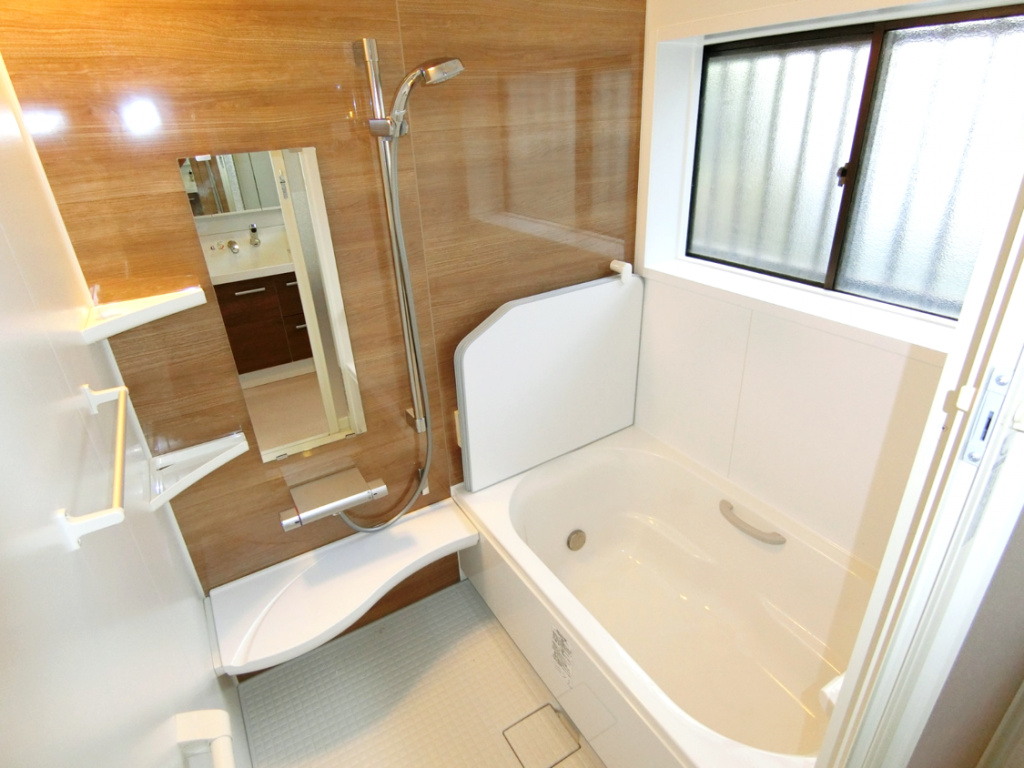 なるべく浴室を広くしたいとの事。浴室は現状1216サイズでしたが、洗面室を少し狭くして1316サイズのユニットバスに施工いたしました。冬に浴室が寒くないように浴室暖房乾燥機もオプションで附属してあります。