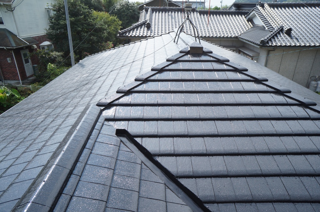 屋根は谷部のモルタル補修、シーリングの打ち替えなどを行ってから塗装いたしました。