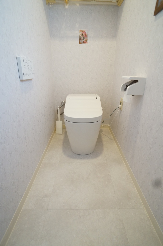 浴室は在来のタイル風呂からタカラのミーナ1616サイズへ取り替え、トイレはPanasonicのアラウーノSⅡへ取り替えました。