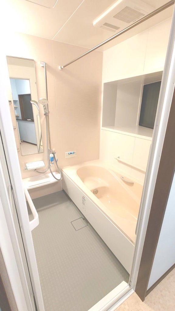 ユニットバスは、窓の部分を上手く造作して設置出来ました。脱衣室にも暖房機を設置しました。これで寒い冬も快適に過ごせそうと喜んでいただきました。H様、弊社に工事をご依頼いただき誠に有難うございました。工事中の様子は現場ブログをご覧ください
