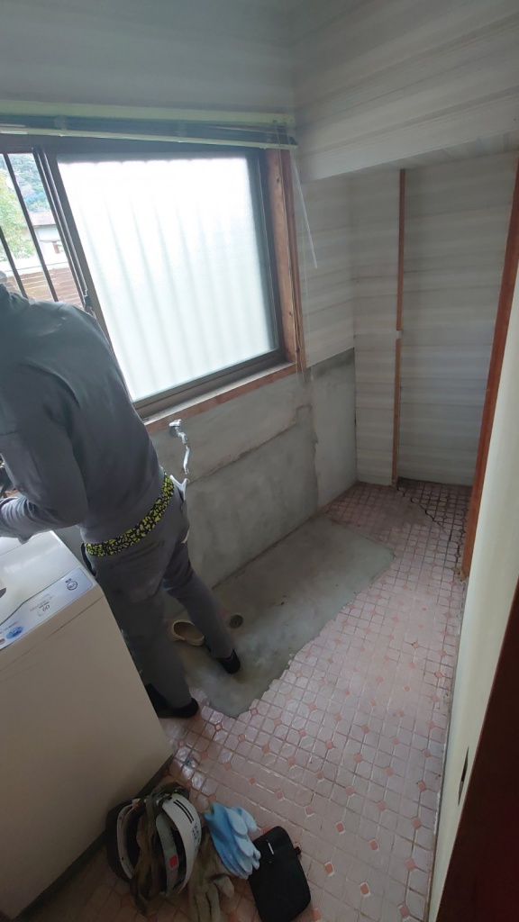 以前弊社で浴室・洗面脱衣室工事をさせて頂いたお客様からのご紹介。鉄骨造で変形間取りの浴室と脱衣室のリフォーム依頼をいただきました。