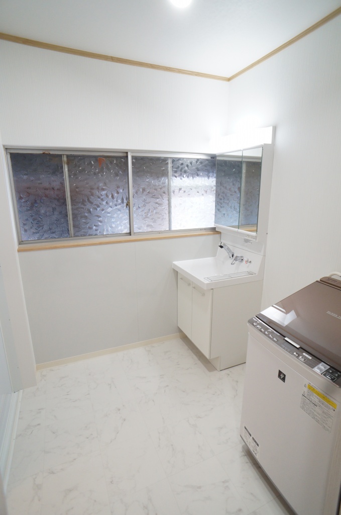 洗面化粧台は同じくクリナップのファンシオ(3面鏡、引出タイプ)を取り付けました。