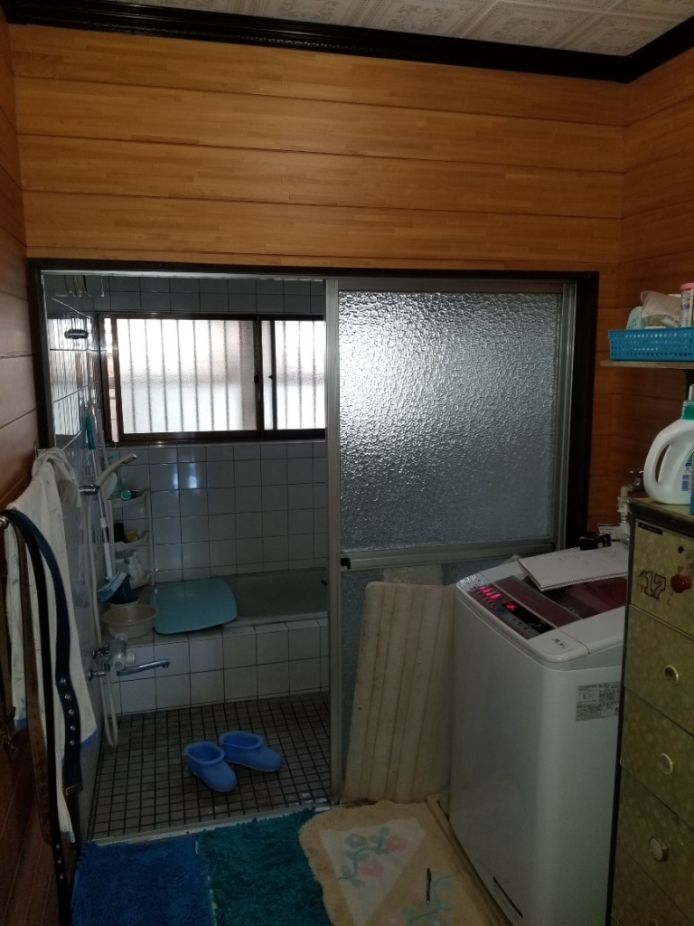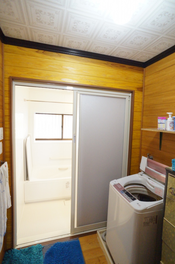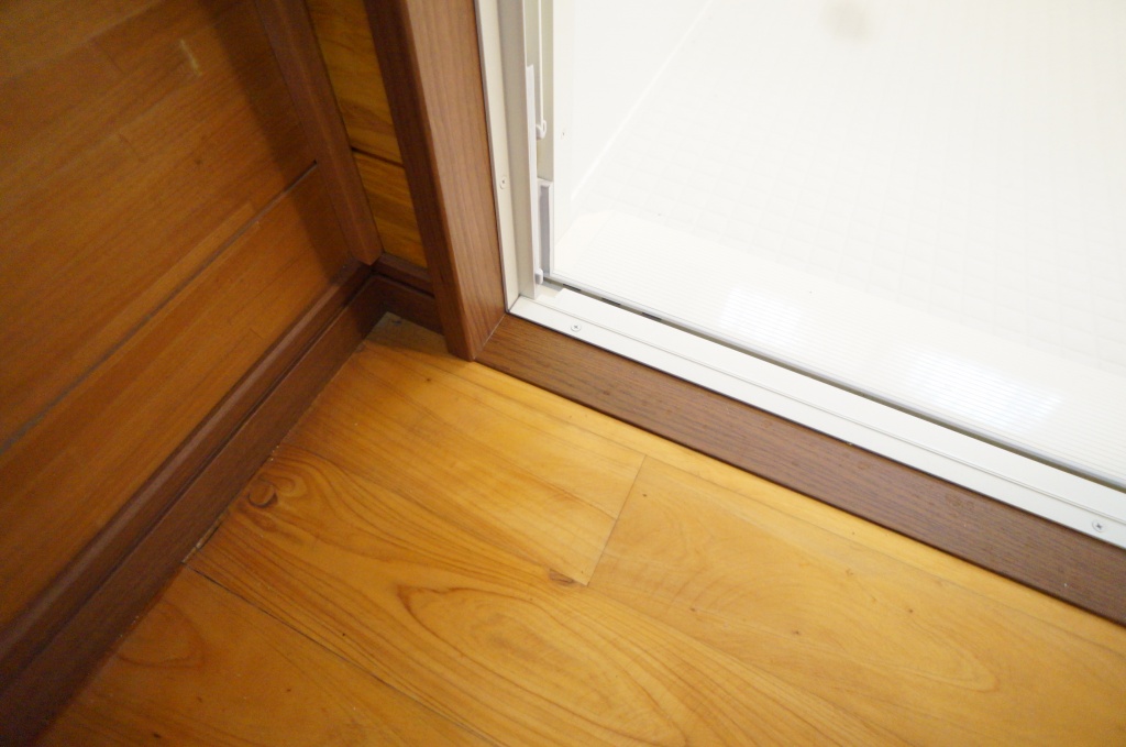 既存が焚き物風呂でしたので通常よりも処分費がかかりました。また脱衣場の床の工事はせず、システムバス入口との取り合いにアルミの木目調のプレートを入れました。