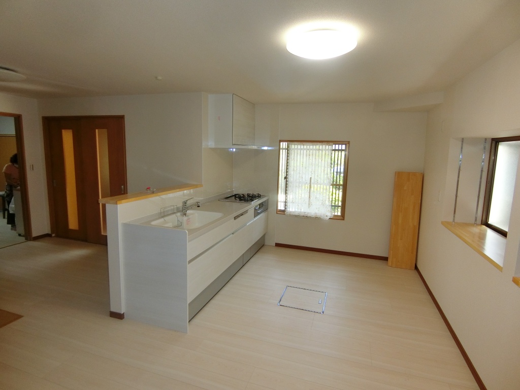 知人からの紹介でと弊社にお電話いただきました。二間を一間にしてダイニングキッチンを作りたいとのご相談でした。窓は既存のを使用したいとのことでしたので残してリフォームしました。段差もなくなり明るい部屋になりましたと喜んでいただきました。N様、この度は弊社にリフョームを依頼していただきまして誠に有難うございました。工事中の様子は施工中継ブログからご覧ください。