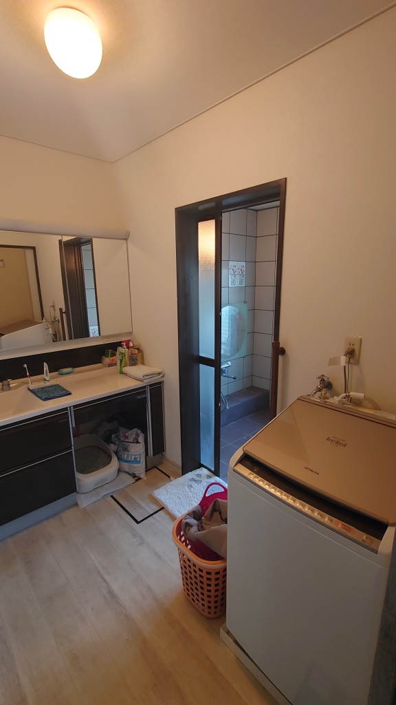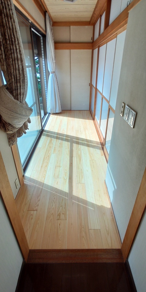 快適な浴室へと生まれ変わりました。縁側の床もヒノキ材に張り替えました。合わせて床断熱も充填致しました