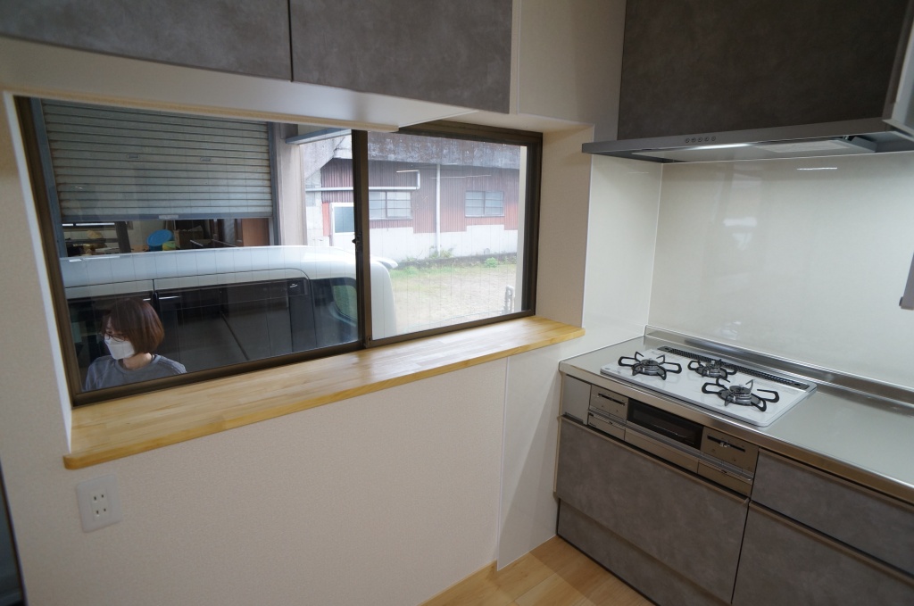 出窓はうまく流用して、物が置けるようにカウンターを作成しました。