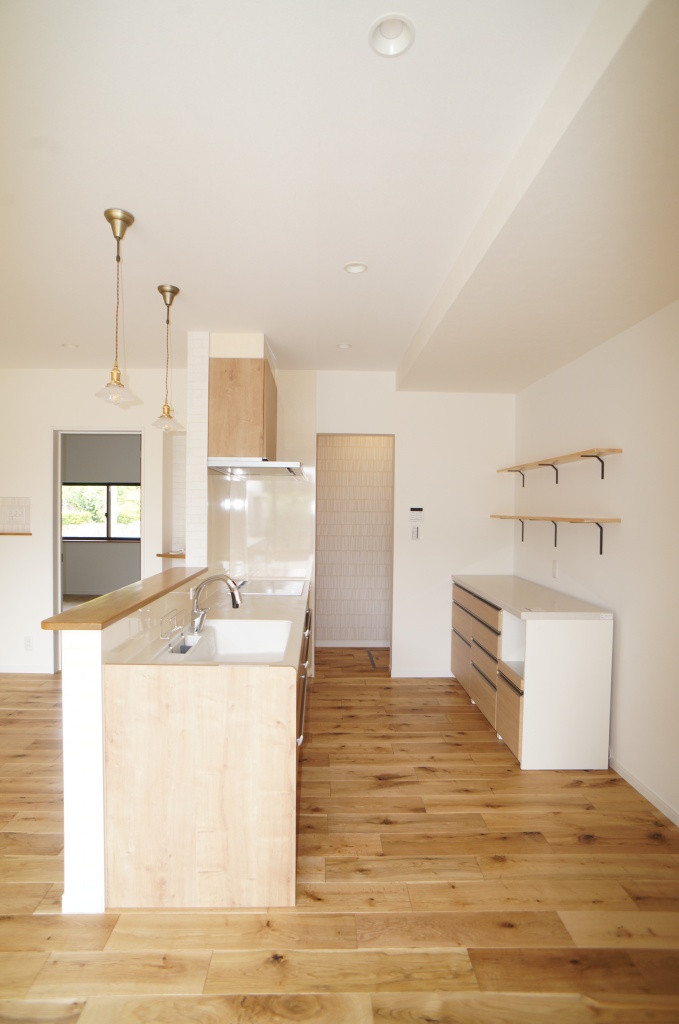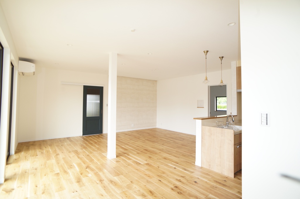 LDKは、お施主様のこだわりの「ジャパンディ」(和と北欧を融合したイメージ)をテーマにシンプルな中にも木材が残るテーマに