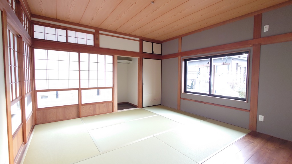 を採用しました。明るい空間になりました。外部は、工事中一部雨漏りが見つかり瓦補修を行い、塗装で仕上げました。