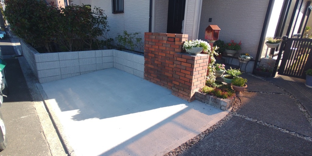 - お子さんの就職に伴い車が1台増えるかもしれないので、現状2台しか停められない駐車場を拡張し、何とか3台停められないかとのご相談をいただきました。 庭のほうに拡張すれば十分3台縦列に停められましたが、ある程度の植栽などは残したいとのご希望もあり門塀側の駐車スペースを拡張する案で工事させていただきました。 門塀のそばに浄化槽が設置してあったため、こちらも拡張するスペースに制限がありましたが何とか軽自動車なら停められるように拡張することが出来ました。 駐車場拡張工事の時に必ず悩まされる水道管・ガス管・排水管などの埋設配管ですが今回を特に支障をきたすことなくスムーズに工事できました。 生コンは打設してから車が乗れるようになるまで約1週間ほどは養生期間を取らなければなりません。また天気に左右される工事になりますのでご計画される場合は 工事期間、お車の移動場所の確保などある程度余裕をもってご準備いただくことをお勧めいたします。 I様、工事の際に何かとご協力いただきスムーズに工事を進めることが出来ました。誠に有難うございました。 また何かございましたらお気軽にご相談ください。
