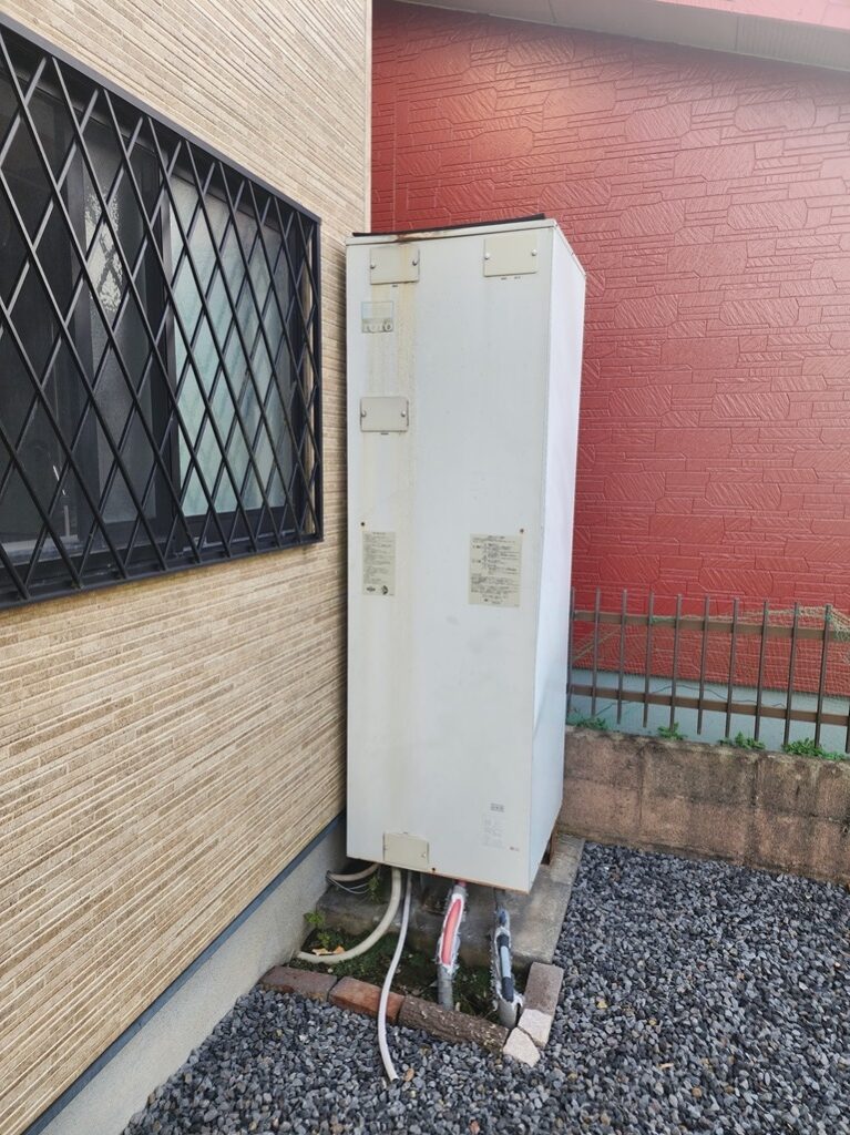 - 以前外装塗装工事を依頼していただいた方から、電気温水器が古くなったので、壊れる前に交換したいとご連絡をいただきました。 希望は電気温水器でもよいとの事でしたが、電気温水器もエコキュートも金額的に大きく変わらない事をご説明して、省エネで性能の良い「エコキュート」に取り替えました。 工事が終わり、お客様からこれで安心してお湯が使えます。と喜んでいただけました。N様、この度も弊社をご利用下さり誠にありがとうございました。