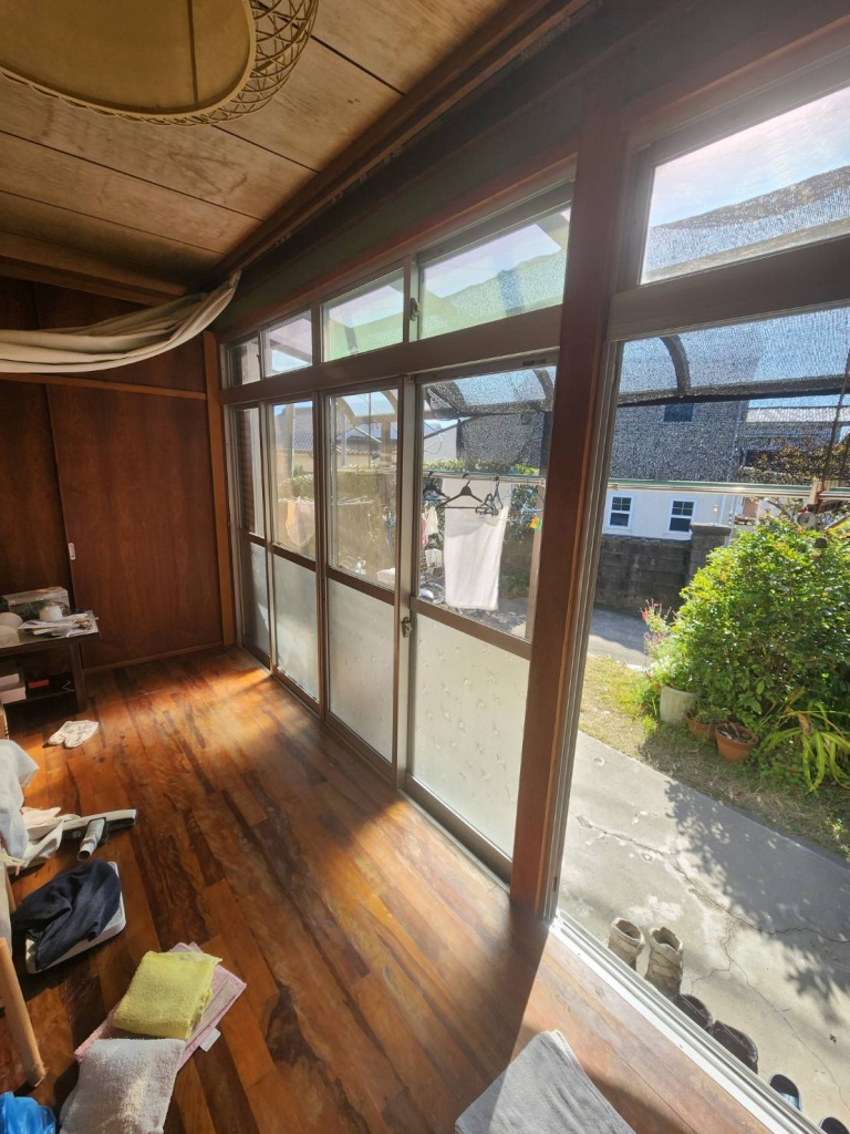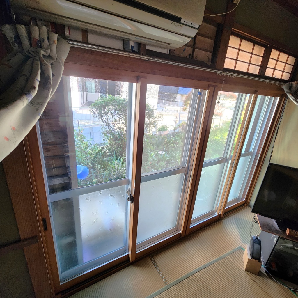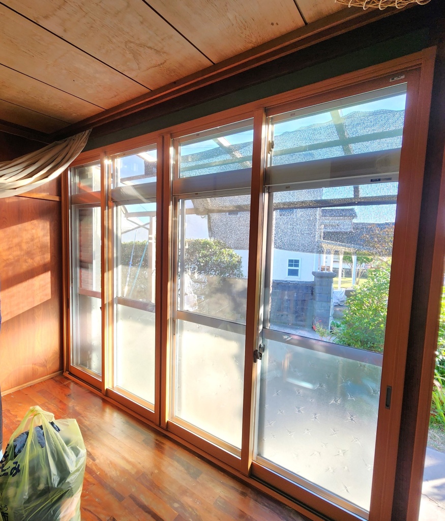 内窓を設置するためには、既存の窓枠から7cm以上の奥行きが必要です。そのため、設置場所によっては、木工事で窓枠を調整する必要がありました。特に苦労したのは縁側部分。奥行きを十分に確保することができなかったため、お客様にご相談し、カーテンの長さを調整していただくことで、無事に設置することができました。