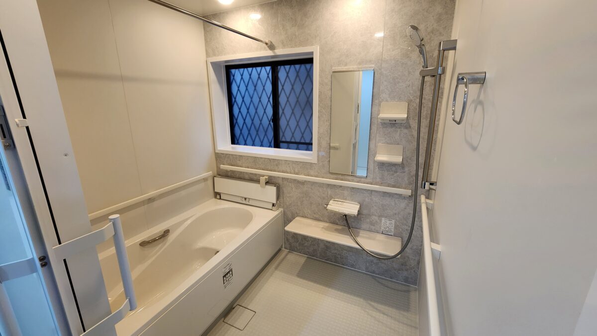 O様は、娘さんのためにバリアフリーなお風呂を希望されていました。そこで、LIXILのリデアMタイプ(1620サイズ)を採用し、サポートパックを取り入れました。このパックには、腰掛け風呂フタとぐるっと全周手すりが含まれており、安全で使いやすい浴室に仕上がりました。