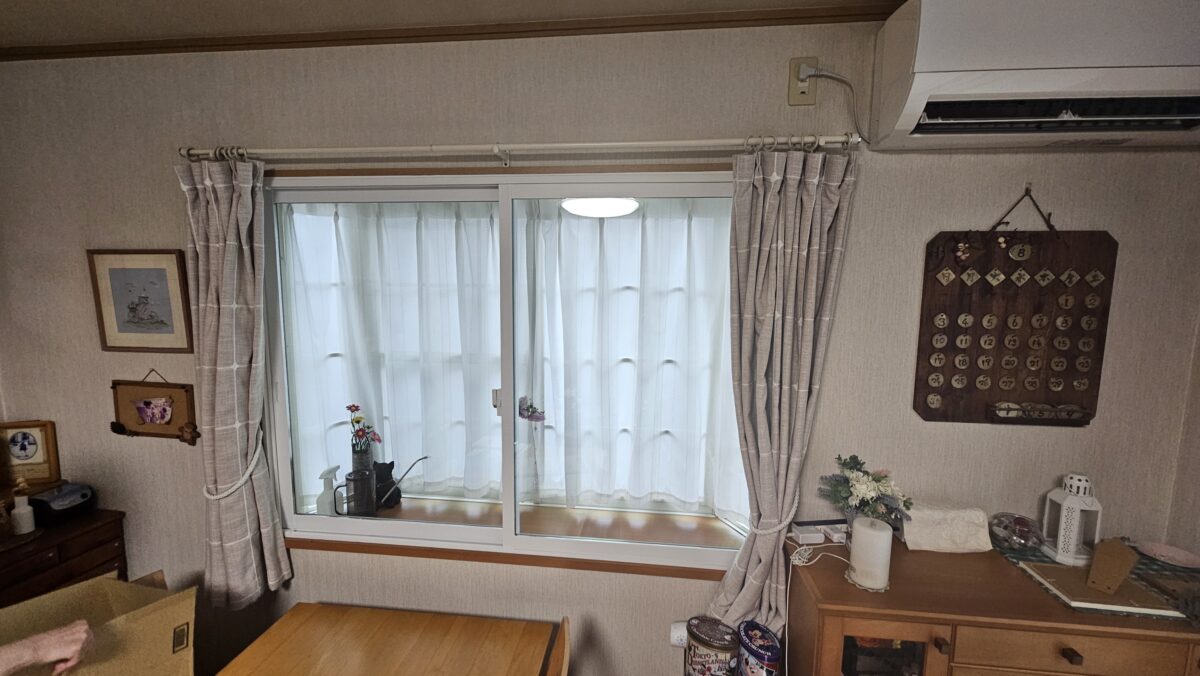 腰高の出窓への設置では、断熱性能が強化され、外気の影響を受けやすい構造の出窓も快適な室温を保つことができます。さらに、出窓特有の角やガラス部分に発生しやすい結露を抑え、汚れやカビを防ぐことができる点が特徴です。遮音性も向上するため、外からの騒音を軽減し、静かな室内空間を作り出します。加えて、古い枠を隠し、モダンで調和の取れた仕上がりになるため、見た目の改善にもつながります。