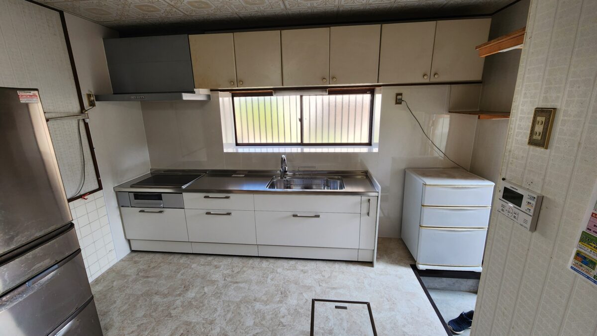 キッチンの水漏れによる劣化が原因で、キッチンの下台交換や周辺のリフォーム工事を行いました。 キッチンはLIXILの「シエラS」(幅271.5cm、奥行60cm、高さ80cm)を採用し、タッチレス水栓を取り付けました。急なご依頼だったため、レンジフードと吊り戸棚はそのまま再利用し、ガスコンロからIHコンロへ変更しています。 また、劣化していた床板を新しく貼り替え、クッションフロアで仕上げました。さらに、キッチンの壁タイル部分にはキッチンパネルを施工し、見た目もすっきりとした仕上がりになりました。(施工金額に諸経費・仮設工事費は含まれておりません。)
