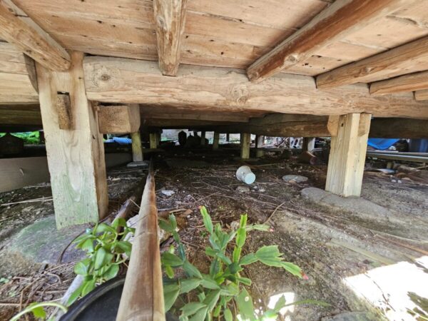 長年の湿気や経年劣化により、床下の木材が腐食。さらに、水平が保たれていない箇所も多く、歩行時の安全性に問題がありました。