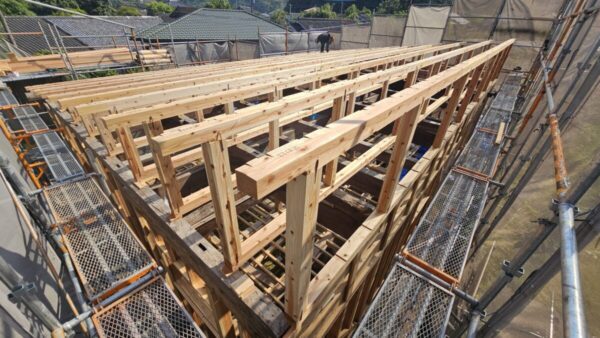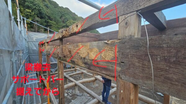 この工程では、古民家特有の太い梁や柱を傷つけないよう、慎重に作業を進める必要があります。