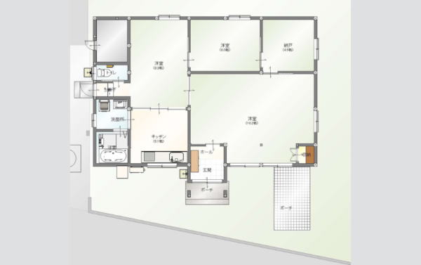 玄関ドアには三協アルミの「彩樹44型 黒茶」を採用し、和の趣を感じさせる美しい引き戸が印象的な玄関ポーチに仕上げました。また、お客様のご要望にお応えし、リビングから直接出られるタイルポーチを設置。星空を眺めながらくつろげるよう、天体観測を楽しむための特別な空間として工夫を凝らしました。