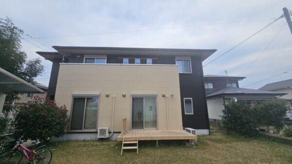 • このたびは、大切なお住まいの屋根・外壁塗装工事をリフォームニシキにお任せいただき、誠にありがとうございました。「色のイメージはあまり変えたくないけれど、そろそろしっかりメンテナンスしておきたい」というご要望でしたので、既存の濃色ベース+ベージュ系アクセントという配色を踏襲しつつ、屋根にはハイパーユメロック(アイアングレー)、外壁にはプレミアムシリコン、高耐候コーキングにはオートンイクシードを組み合わせる仕様をご提案しています。 今後ともアフターフォローを含め、末永くお付き合いいただけましたら幸いです。鹿児島市・姶良市・霧島市で同じように「今の雰囲気を大切にしながら、長持ちする塗り替えがしたい」とお考えの方にも、ぜひ参考にしていただきたい施工事例です。