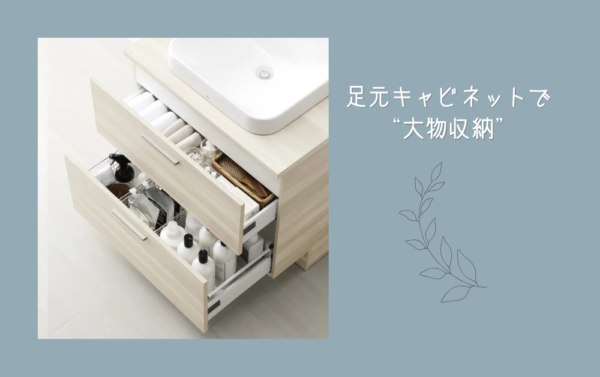 など、かさばる物も足元キャビネットにしっかり収納可能。