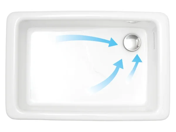 排水口がボウルの中心ではなくコーナー側に寄せられている設計で、