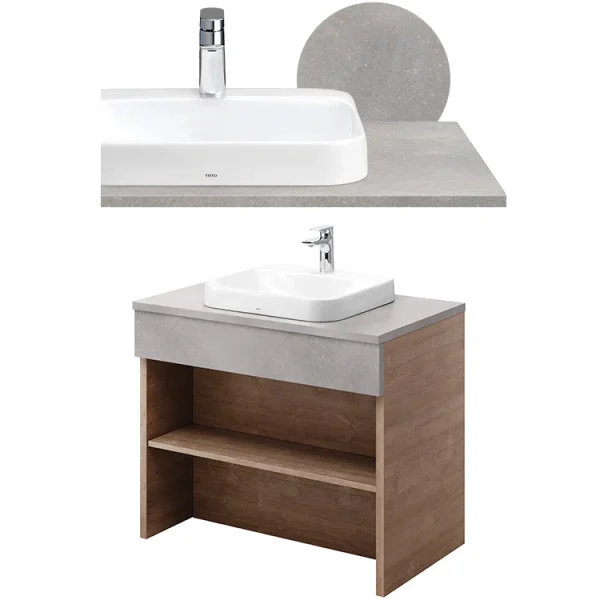 そこでお客様へご提案したのがデザインは造作風、機能面はメーカーならではの利便性を併せ持った**TOTOの造作風洗面化粧台「ドレーナ」**です。