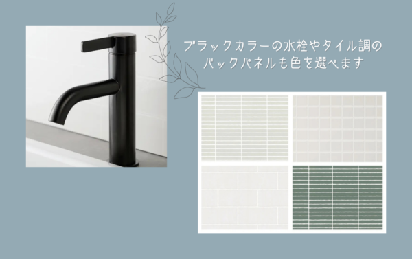 - ボウル・水栓・鏡・タイルなどをすべて個別に選ぶ